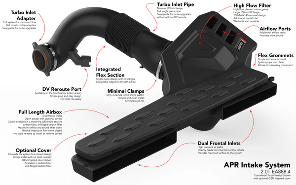 - Comes as an open intake system and is fully configurable as a closed system
